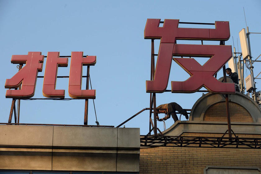 北京动物园天皓成服装批发市场摘除广告牌。 欧阳晓菲/CFP