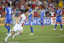 - 2015年1月14日,澳大利亚布里斯班,2015年亚洲杯小组赛B组,中国2-1乌兹别克斯坦,中国队小组赛两战全胜提前出线。图为孙可打入反超进球后庆祝。 CFP