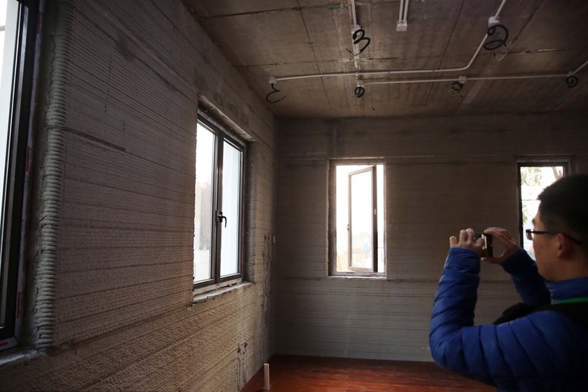 图为来访者参观3D打印建筑内部。 魏志阳/CFP