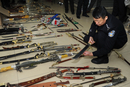 1月29日,新疆乌鲁木齐,5家商户主动向警方上交各类管制刀具2100余把。 古浪/东方IC