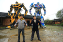 父子用废旧汽车制成的变形金刚。彭斌/CFP