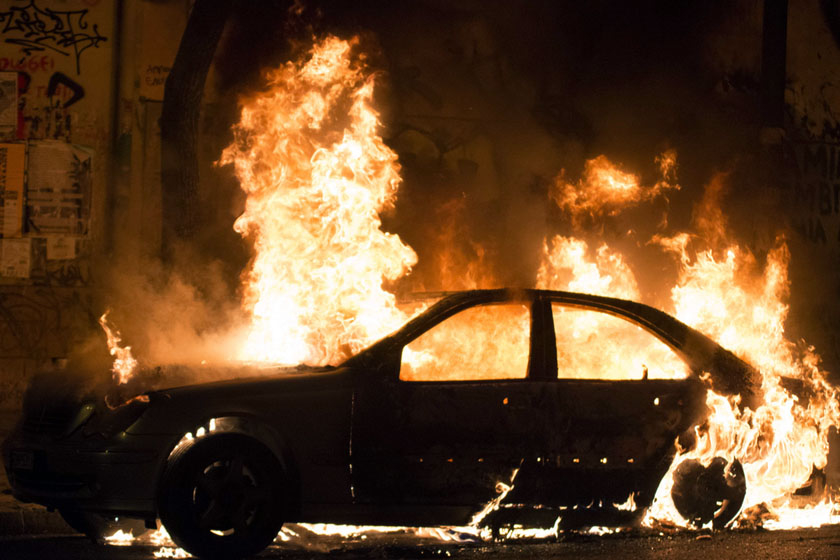 - 图为现场被烧毁的汽车。 Nikolas Georgiou/东方IC