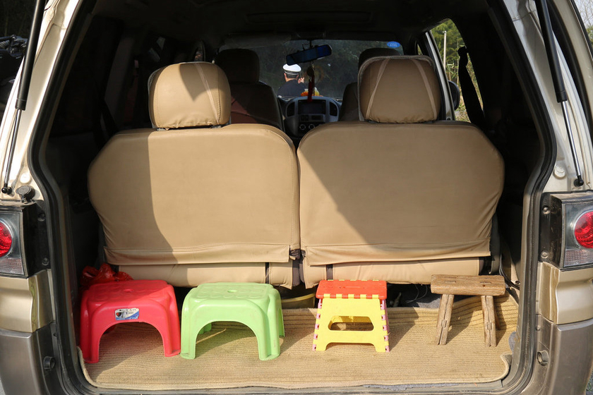 2015年3月23日,安徽霍山,交警查处了一辆严重超员且经过非法改装的“黑校车”。该“校车”核载人数7人,实载人数22人,超员100%以上。同时,车内经过非法改装,座椅被拆除,并焊上钢架、垫上海绵供学生乘坐。 刘容海/CFP