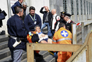 - 枪击事件后,医护人员帮助一名受伤的男子。 CFP