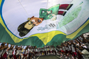 - 当地时间2015年4月12日,巴西多地民众举行大规模反政府示威活动,要求弹劾总统罗塞夫,抗议国家经济增长停滞及巴西石油公司腐败。图为巴西里约,民众挥舞旗帜,举行反政府示威活动。 东方IC