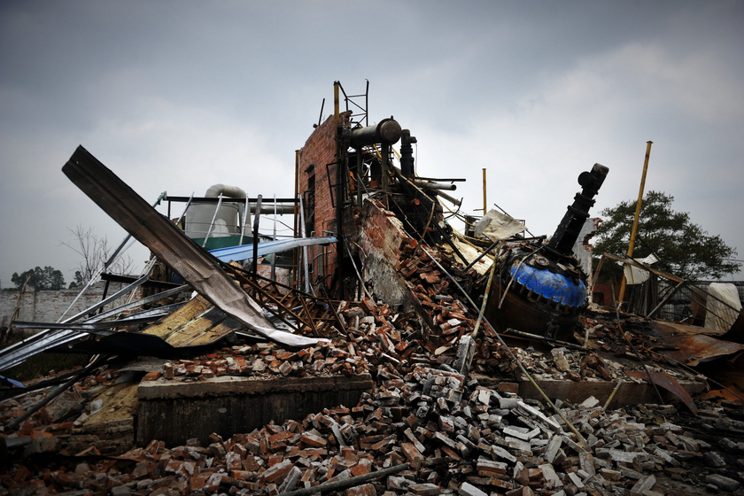 2015年4月19日,广东佛山,东联迪葆涂料有限公司爆燃现场一片狼藉。18日上午,该涂料公司一车间在生产环氧酯过程中发生爆燃,致一人死亡,三人受伤。 东方IC