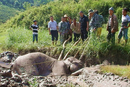 - 森林公安民警和救援人员对拖出泥潭的野象进行检查。 常宗波/CFP