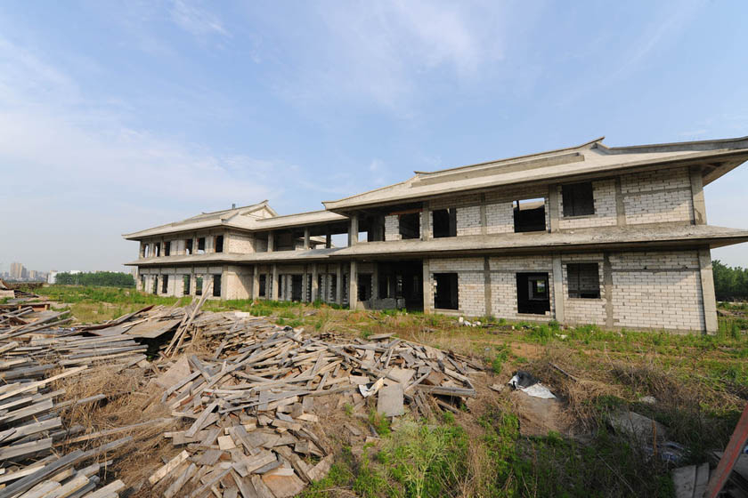- 5月6日,安徽滁州,中华姓氏牌匾博物园内杂草丛生,还有不少被遗弃的建筑垃圾。这个曾经被标榜“全国首个”、“独一无二”的“滁州中华姓氏牌匾博物园”,被列为琅琊山旅游区重点项目之一。目前,该项目已“搁浅”,停工近一年,仅完成了建筑物的基本框架建设。面积超过6000平方米的博物园已成为琅琊山脚下的一座“孤岛”。据项目投资的负责人介绍,该博物园2013年12月开工破土,预计2015年10月竣工。对于停工原因,表示不便透露。CFP