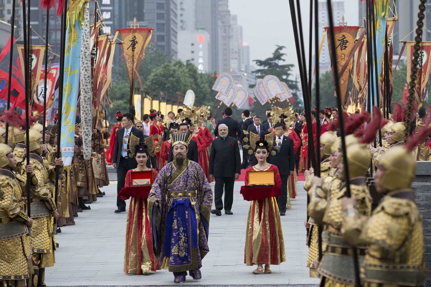 2015年5月14日,陕西西安,印度总理莫迪开启任内首次中国之行。当晚,为欢迎印度总理莫迪访问西安,一场精彩纷呈的演出在西安上演。丁海涛/新华社