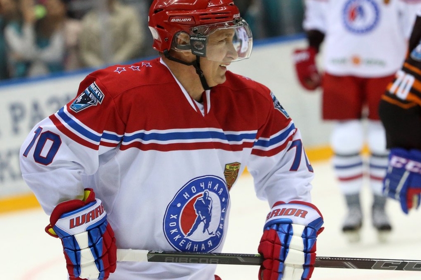 当地时间2015年5月16日,俄罗斯索契,俄罗斯总统普京参加俄罗斯业余选手和冰球退役运动员之间进行的冰球比赛,最终普京队以18比6获胜,其中普京进了八球。 Sasha Mordovets/CFP