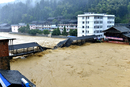 2015年5月26日至27日,贵州省黔东南州榕江县普降暴雨。图为27日,洪水淹没了两汪中心学校校园。 王炳真/东方IC