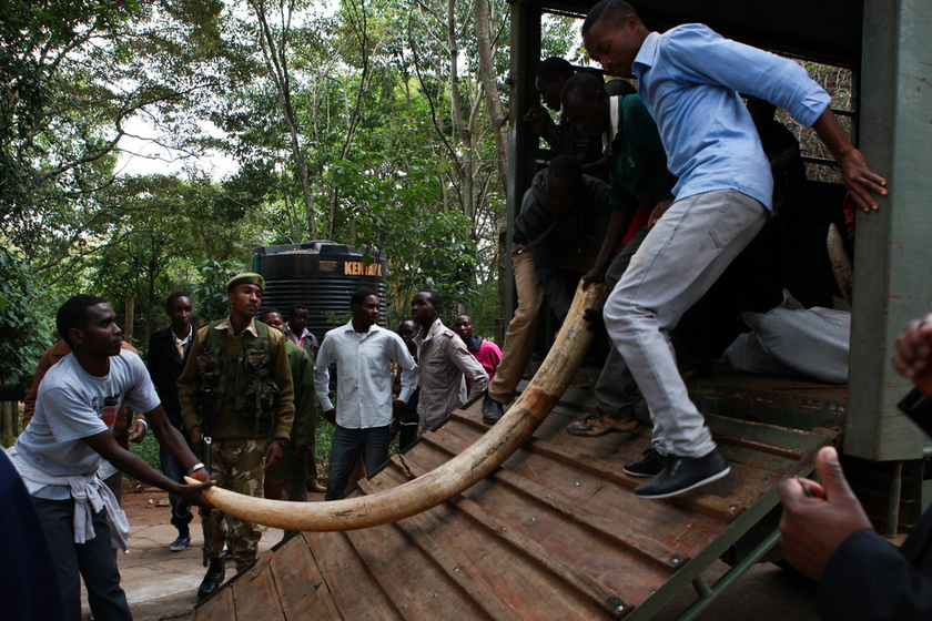 大量象牙从肯尼亚首都内罗毕离开非洲,前往亚洲市场。而这些象牙分别来自于坦桑尼亚和赞比亚等国家。图为当地时间2015年7月21日,肯尼亚内罗毕,肯尼亚野生动物协会进行政府库存象牙犀牛角数量年度统计。 DANIEL IRUNGU/东方IC