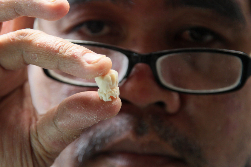 在亚洲,象牙雕刻品被视为珍贵的艺术品,价值连城。图为2013年2月7日,泰国北榄坡府,一名雕工正在雕刻象牙。 Sakchai Lalit/东方IC