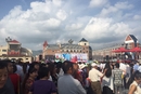 2015年7月31日下午4时,张家口崇礼县的广场上已经聚集了大量群众,等待2022年冬奥会主办城市的揭晓。 黎慧玲/财新记者