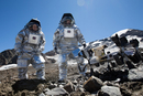 当地时间2015年8月3日,奥地利考恩台尔冰川,奥地利航天论坛在当地进行为期两周的模拟火星实地考察任务,为将来人类前往火星冰原地区考察做准备。图为宇航员身着宇航服进行实地模拟任务测试。 东方IC