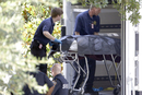 当地时间2015年8月8日晚,美国休斯顿发生枪击案,5名儿童和3名成年人在住所杀害,49岁的男性犯罪嫌疑人David Conley在与警方对峙后投降。图为遇害人遗体被搬上卡车。 David J Phillip/东方IC