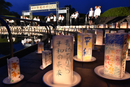 当地时间2015年8月8日,长崎原子弹爆炸70周年前夕,在日本长崎的长崎和平公园,民众点亮纸灯悼念遇难者。 Eugene Hoshiko/东方IC
