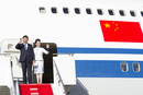 习近平和夫人彭丽媛步出舱门。 李学仁/新华社