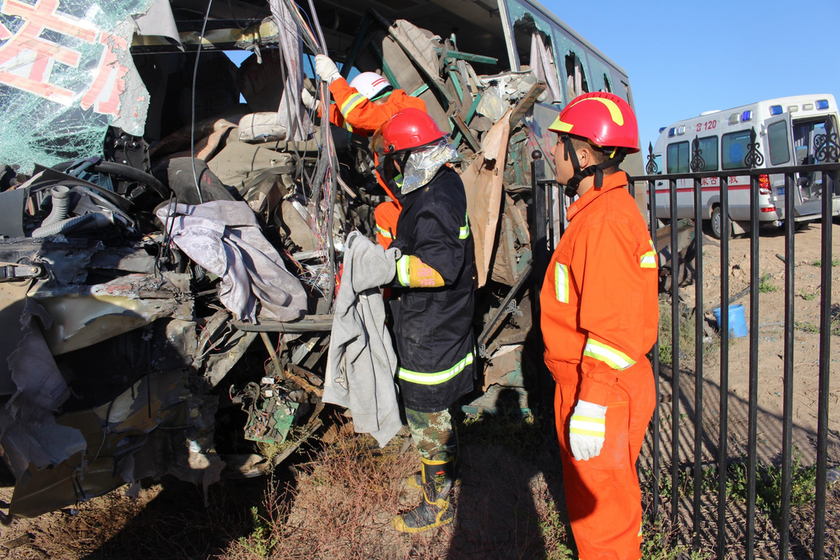 2015年9月22日上午,内蒙古自治区阿拉善盟额济纳旗境内发生一起客运班车与拉煤半挂车相撞事故,已造成6人死亡,31人受伤。 王伟/东方IC