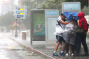 2015年9月28日,强台风杜鹃暴风笼罩,台北市区阵阵强风吹得路上行人狼狈不堪,等公车的民众被风吹得连站都站不稳,只能抱著站牌。 东方IC
