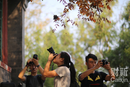 2015年10月16日,北京,香山红叶节开幕,雾霾中,红叶率比较低但游客却不少,有游客围住为数不多的红叶拍照。下午14时,北京发布空气重污染蓝色预警,这是进入10月以来,北京第二次启动空气重污染预警。 梁莹菲/财新见习记者