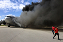 飞机在跑道上滑行时机体左侧引擎起火,但火势很快得到控制。 Joe Raedle/视觉中国