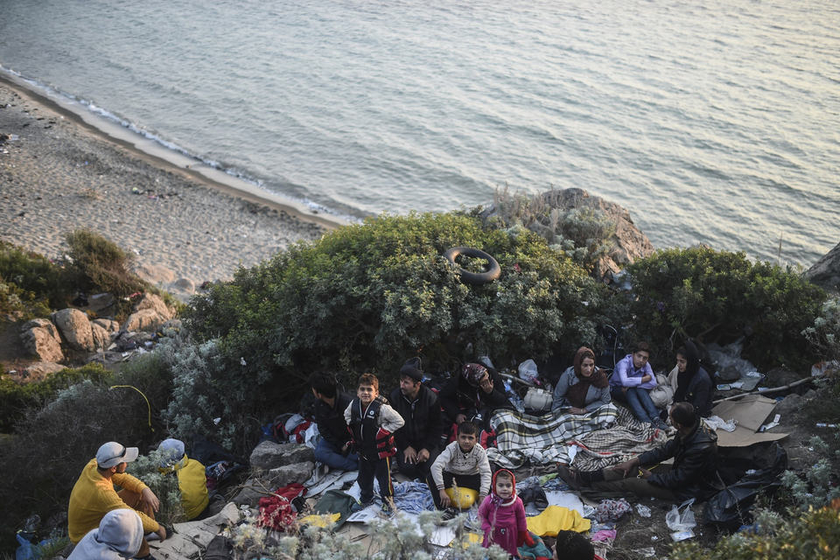 当地时间2015年11月7日,土耳其穆拉省博德鲁姆,来自叙利亚等地的难民藏身山间灌木丛中,试图等到天黑后前往希腊科斯岛。 BULENT KILIC/视觉中国