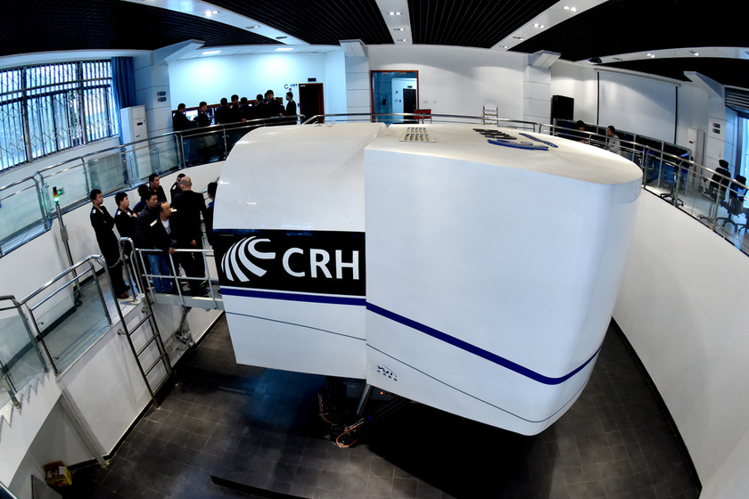 2015年11月23日,四川成都,来自全国各地的火车司机,在西南交通大学轨道交通实验室的CRH高速动车组模拟驾驶仿真器里,进行动车组司机资格证理论培训。这个模拟器是全国首个高速动车组模拟驾驶仿真器,采用的是CRH380B型车。 张磊/视觉中国