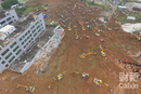 航拍深圳垮塌事故第三日救援现场,挖掘机密密麻麻地排布在事故现场。 财新图片
