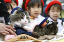 孩子们在抚摸小猫“Love”,它将正式接替老站长人气猫咪“Bus”成为芦之牧温泉站的新任站长。 东方IC