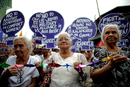 参加抗议的有6名幸存的菲律宾慰安妇,她们都在90岁高龄左右。 视觉中国