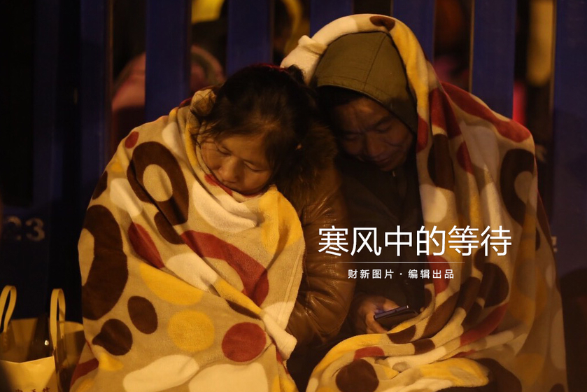 截至2016年2月4日上午9时,广州火车站当天已开行列车25趟,发送旅客3.4万人,有4趟列车晚点,其他21趟正点发出。广州火车站运输秩序目前已全面恢复。部分旅客怕被滞留广州火车站,提前进站候车,又由于室外候车寒冷,旅客们互相取暖,等待回家的启程。图、文/财新记者夏伟聪