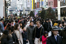 日本东京,银座购物区街头大批游客提着行李箱开启血拼之旅。 Rodrigo Reyes Marin/东方IC