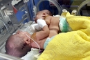 2016年1月13日,江西九江一位18岁的孕妇诞下连体双胞胎男婴,腹部连体,肝脏相连。 视觉中国
