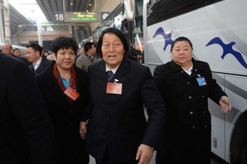 2016年3月2日上午,北京,山西代表团抵京,87岁的全国人大代表申纪兰随团抵达。 视觉中国
