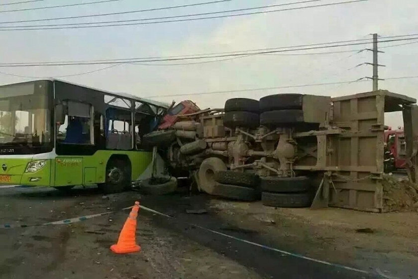 2016年4月20日17时15分,公交集团八方达大兴分公司940路京AV2557号大客车,由凤河营发往丽园车队,18点07分由南向北行驶到中轴路魏南路口,遇红灯等候。绿灯放行后,公交车起步通过,行驶到路口中间时,一辆重载十轮大货车由西向东闯红灯驶入路口,先撞上一辆由北向南行驶的小客车,大货车向右侧翻,车头撞在公交车左侧中部,造成公交车向东侧滑,停住后公交车头部向西。公交集团安全部相关负责人介绍,已经确定为大货车闯红灯全责,经初步统计8人有就医要求。 东方IC