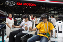 2016年4月25日,北京国际展览中心,北京2016车展开放媒体日,各个厂商设立多个展台展示新车,不少站台紧跟科技潮流设立了VR体验区,让消费者能通过VR感受新车驾驶与操控的智能化体验。起亚展台,两位消费者在展台戴上VR设备体验新车驾驶感受。 张家乐/财新见习记者