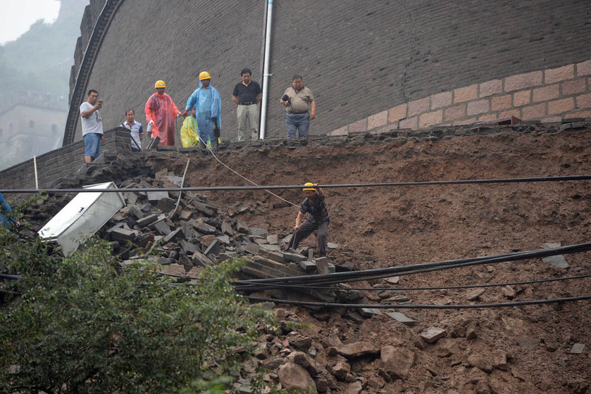 居庸关长城护路墙坍塌。 东方IC
