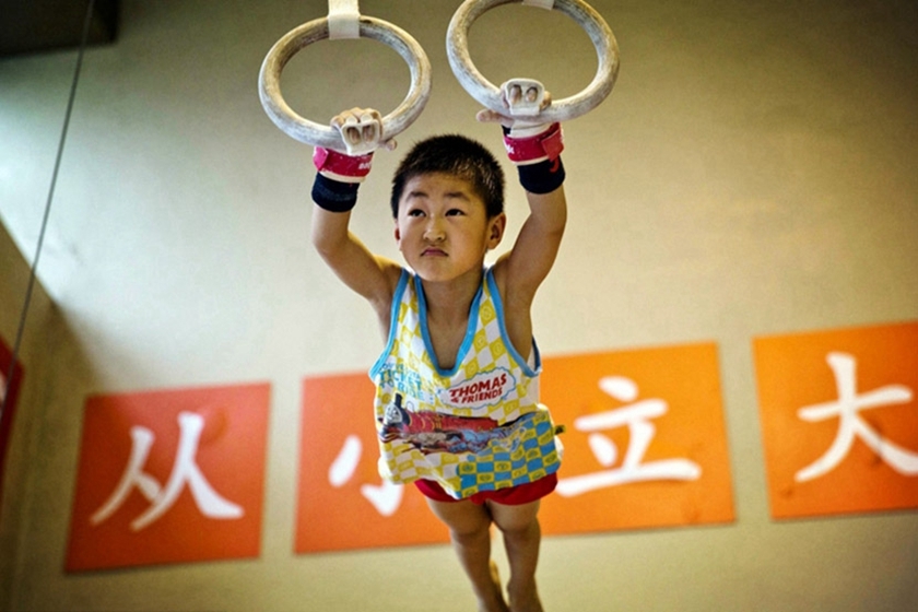 2016年6月16日,上海徐汇体校的训练场内,一名小学员正在训练吊环,身后的墙面上贴着“从小立大”的训练口号。2016年8月4日报道,北京时间8月6日早上7点,2016里约奥运会将正式开幕。伟大的运动员是天赋异禀的,更是后天苦练而成的。冠军之路漫长而狭窄,运动员需要经过怎样的锻造才能走上奥运领奖台呢?除了苦练,奥运之路没有捷径。但是一些科学的训练方法的确可以提高训练效率。科学家对于不同训练类型的研究仍在继续,而孩子们的训练之路也仍在继续。 编辑/张家乐 图/东方IC