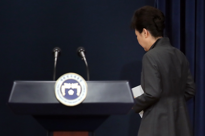 当地时间2016年11月4日,韩国,韩国总统朴槿惠鞠躬致歉。 视觉中国