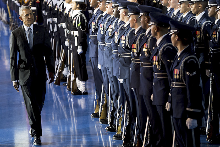 当地时间2017年1月4日,美国弗吉尼亚,美国总统奥巴马的荣誉告别仪式在海德森-霍尔联合基地举行。图自视觉中国
