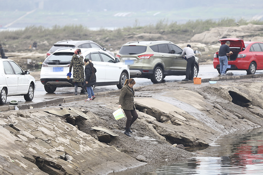 2017年02月05日,重庆南岸区哑巴洞码头,百余辆车在此排队洗车。图自视觉中国