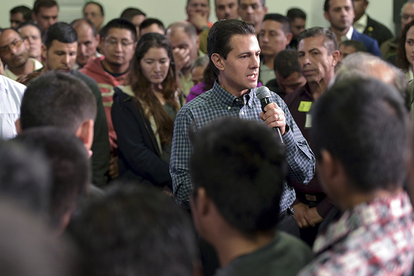 当地时间2017年2月7日,墨西哥墨西哥城,墨西哥总统涅托亲自前往墨西哥城国际机场欢迎135名被遣回国的旅美墨西哥移民,这是美国新总统特朗普上任后遣返的首批移民。图自视觉中国