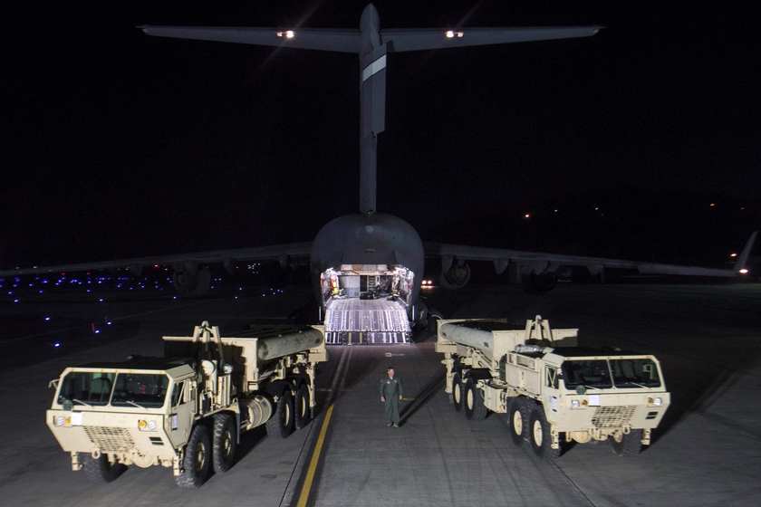 当地时间2017年3月6日晚,“萨德”反导系统首批零部件抵达韩国,包括两台发射架。