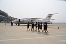 平壤至丹东包机航线开通 朝鲜空姐为乘客献花