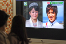 当地时间2017年5月16日,日本东京,街头电视播放日本天皇次子秋筱宫夫妇的长女真子公主将与大学同学小室圭于近期订婚的新闻。图/视觉中国