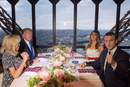 当地时间2017年7月13日,法国总统马克龙和夫人布丽吉特、美国总统特朗普和夫人梅拉尼娅在埃菲尔铁塔二层的儒勒·凡尔纳餐厅出席私人晚宴。图/视觉中国