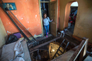 当地时间2017年7月31日,秘鲁利马,Raquel Santiago的一位女邻居坚信自家的房子下面藏着黄金宝藏,于是挖了一个大地道寻宝,并用木梁加固,最终她这一疯狂的行为破坏了邻近房屋的地基,Raquel Santiago家的房子就此遭了殃。图为Raquel Santiago站在地道旁。视觉中国