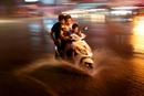2017年8月2日,北京,一场雷阵雨降落京城,给暑期的人们带来凉爽。一辆电动车从积水中驶过。图/视觉中国