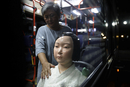 2017年8月13日,韩国首尔,工作人员在151路公交车上安装“慰安妇”少女像。视觉中国